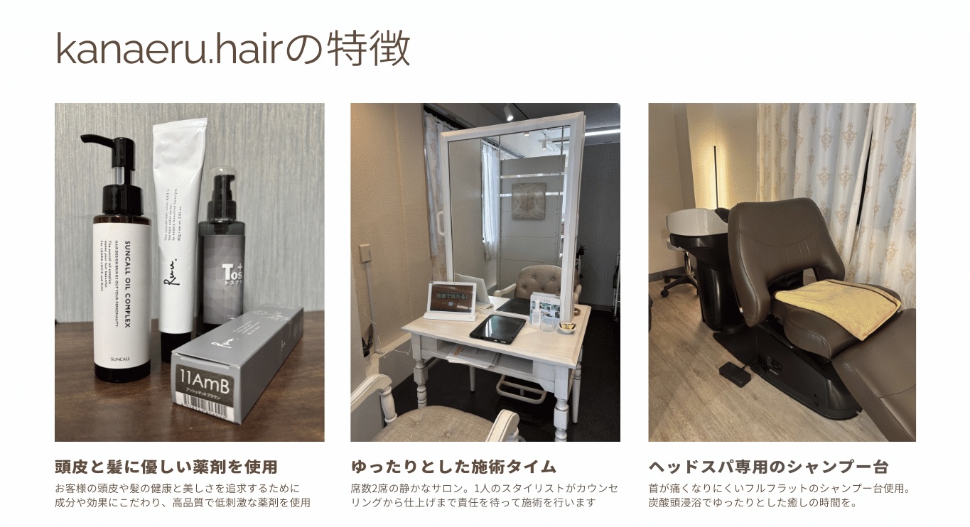 kanaeru.hairでは、お客様のお悩みやライフスタイルに合わせて、