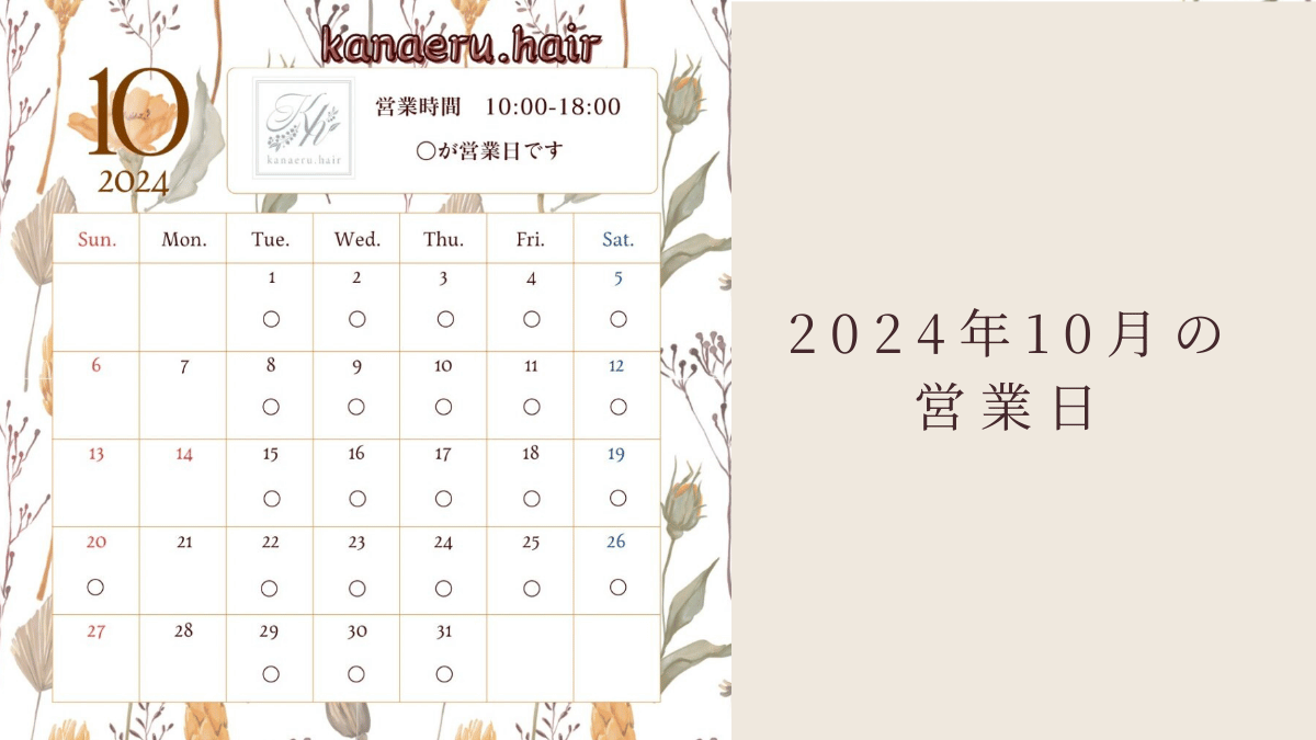2024年10月は、通常の営業日に加えて20日(日)も営業いたします。