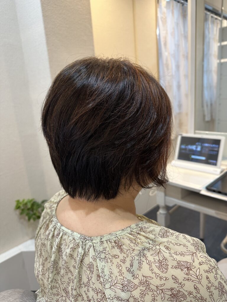 こんにちは。kanaeru.hairの中西です。 今回のお客様は「似合わせカット」のメニューで前下がりのショートレイヤーボブに施術しました。 お客様からのご希望は、「トップはふんわり感を出しつつ、後頭部からえりあしにかけてはスッキリさせたい」とのこ... -